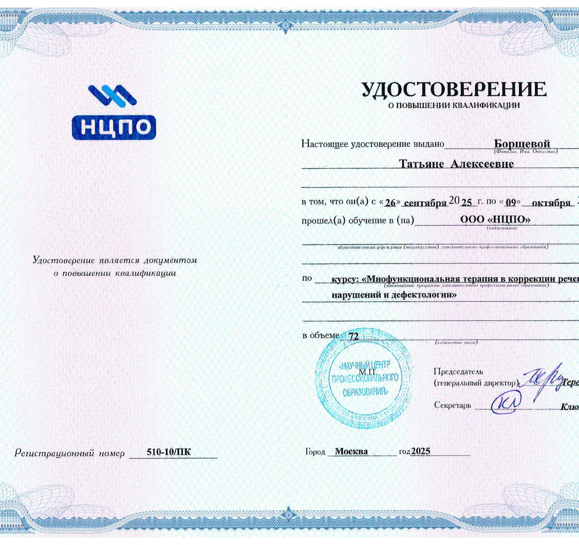 - 2025г Миофункциональная терапия в коррекции речевых нарушений и дефектологии.