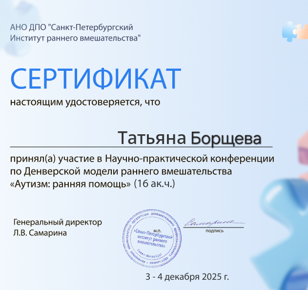- 2021г Авторский курс Татьяны Грузиновой и Елизаветы Гуриной «Запуск речи неговорящих детей: от нуля до фразовой речи». Логопедический центр "Территория речи"