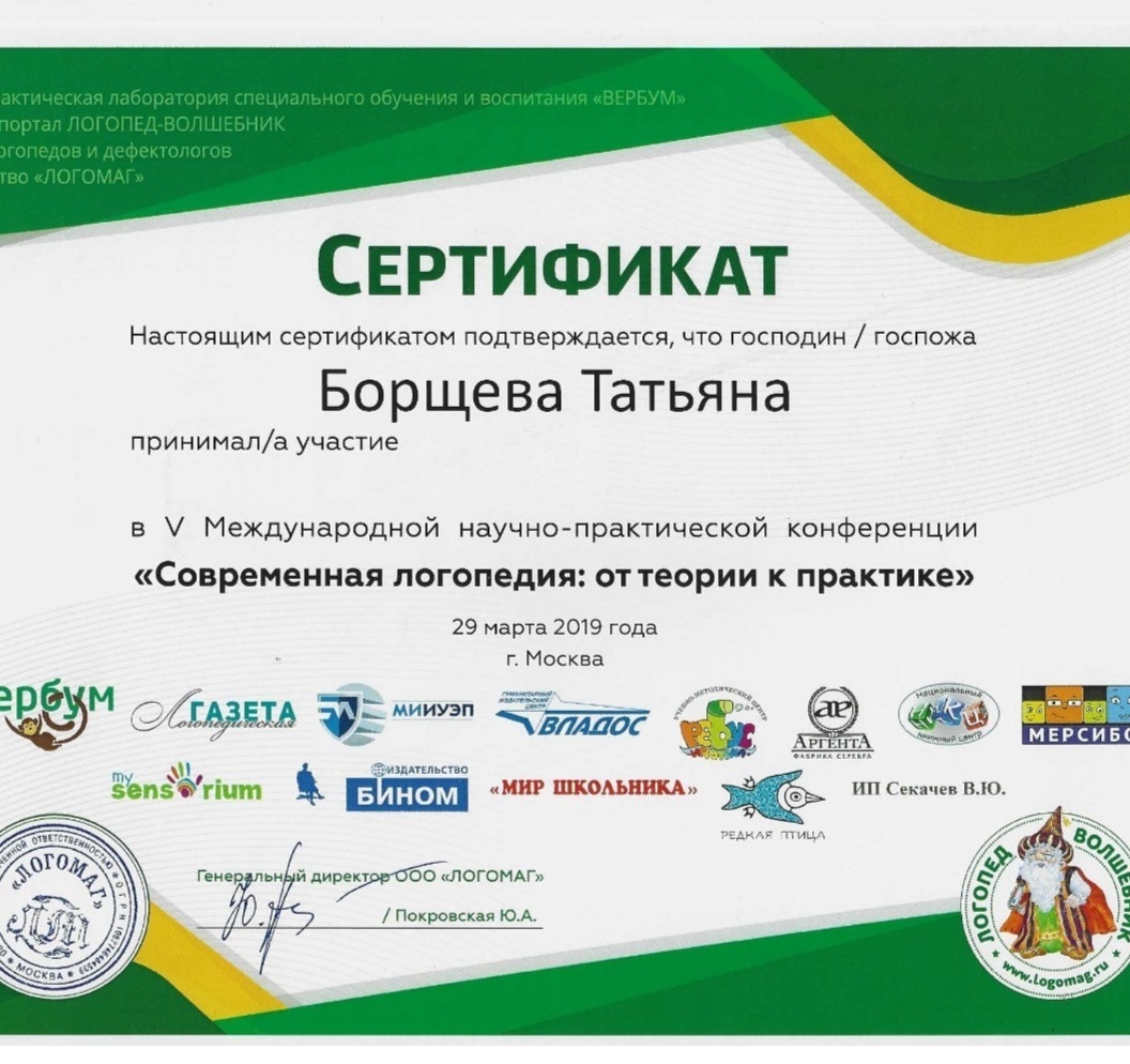 Благодарим Татьяну за постановку звуков Л и Р. Завести "моторчик" получилось только с Татьяной. До этого ни садовский, ни другой платный логопед не могли. Может потому что только сейчас занятия проходили в игровой форме и ребенок с удовольствием занимался. Всего за 2 месяца, 2 раза в неделю и прогресс виден! Спасибо большое за душевный настрой и профессионализм!