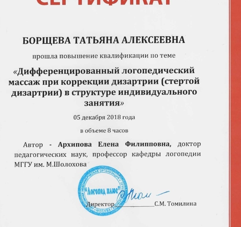 - 2018г Дифференцированный логопедический массаж при коррекции дизартрии (стертой дизартрии) в структуре индивидуального занятия". АНО "Логопед плюс"